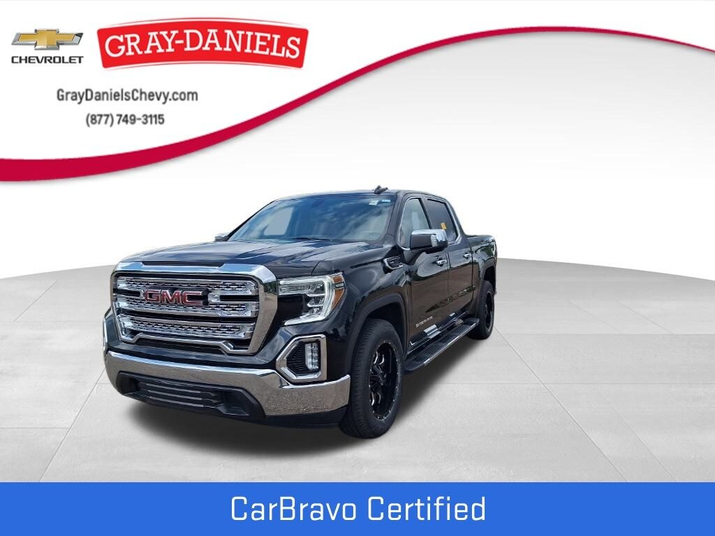 *ONSTAR VEHICLE SERVICES*, *V-8 ENGINE*, Clean Carfax, Apple CarPlay / Android Auto, Backup Camera, Bluetooth, Power Driver Seat, Leather, Moonroof, Heated Seats, Sierra 1500 SLT, 4D Crew Cab, EcoTec3 5.3L V8, 8-Speed Automatic, RWD, Jet Black Leather, 12-Volt Rear Auxiliary Power Outlet, 120-Volt Bed Mounted Power Outlet, 120-Volt Instrument Panel Power Outlet, 170 Amp Alternator, 2 USB Ports, 2 USB Ports (1st Row), 20" x 9" Polished Aluminum Wheels, 4G LTE Wi-Fi Hotspot Capable, Auto-Locking Rear Differential, Auxiliary External Transmission Oil Cooler, Chrome Grille, Chrome Wheel To Wheel Assist Steps, Color-Keyed Carpeting Floor Covering, Compass, Deep-Tinted Glass, Electric Rear-Window Defogger, Electrical Lock Control Steering Column, Floor-Mounted Center Console, Front Bucket Seats, GMC Connected Access Capable, Heated 2nd Row Outboard Seats, Heated Driver & Front Outboard Passenger Seating, Hitch Guidance, Hitch Guidance w/Hitch View, In-Vehicle Trailering App, Integrated Trailer Brake Controller, Keyless Open & Start, LED Cargo Area Lighting, Manual Tilt-Wheel & Telescoping Steering Column, OnStar & GMC Connected Services Capable, Power Door Locks, Power Front Passenger Windows w/Express Up/Down, Power Front Windows w/Driver Express Up/Down, Power Rear Windows w/Express Down, Power Sliding Rear Window w/Rear Defogger, Preferred Equipment Group 4SA, ProGrade Trailering System, Rear Dual USB Charging-Only Ports, Rear Wheelhouse Liners, Remote Vehicle Starter System, SLT Convenience Package, SLT Premium Package, Steering Wheel Audio Controls, Steering wheel mounted audio controls, Theft Deterrent System (Unauthorized Entry), Trailering Package, Universal Home Remote, Ventilated Driver & Front Passenger Seats.