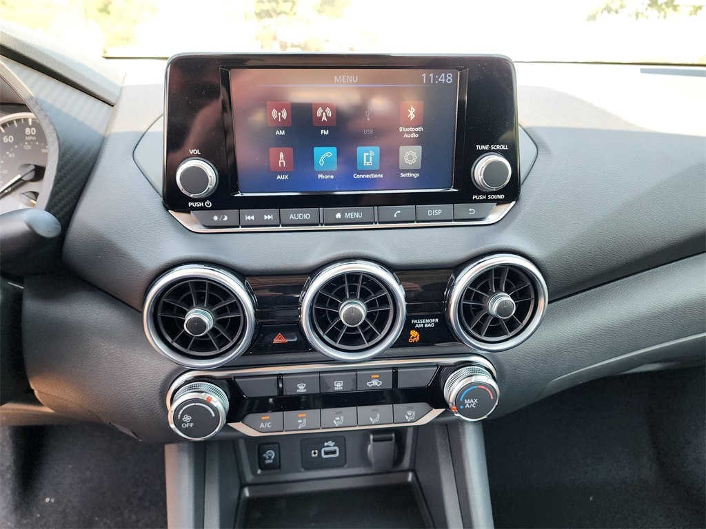 S, CVT with Xtronic, Charcoal Cloth, 16" Steel Wheels w/Full Wheel Covers, 4 Speakers, ABS brakes, Air Conditioning, AM/FM radio, Auto High-beam Headlights, Blind Spot Warning, Brake assist, Bumpers: body-color, Cloth Seat Trim, Delay-off headlights, Driver door bin, Driver vanity mirror, Dual front impact airbags, Dual front side impact airbags, Electronic Stability Control, Four wheel independent suspension, Front anti-roll bar, Front Bucket Seats, Front Center Armrest, Front reading lights, Fully automatic headlights, Illuminated entry, Knee airbag, Low tire pressure warning, NissanConnect featuring Apple CarPlay and Android Auto, Occupant sensing airbag, Outside temperature display, Overhead airbag, Overhead console, Panic alarm, Passenger door bin, Passenger vanity mirror, Power door mirrors, Power steering, Power windows, Radio data system, Radio: AM/FM w/RDS/MP3/Aux-In, Rear anti-roll bar, Rear Parking Sensors, Rear side impact airbag, Rear window defroster, Remote keyless entry, Speed control, Speed-sensing steering, Split folding rear seat, Steering wheel mounted audio controls, Tachometer, Telescoping steering wheel, Tilt steering wheel, Traction control, Trip computer, Variably intermittent wipers. 30/40 City/Highway MPG