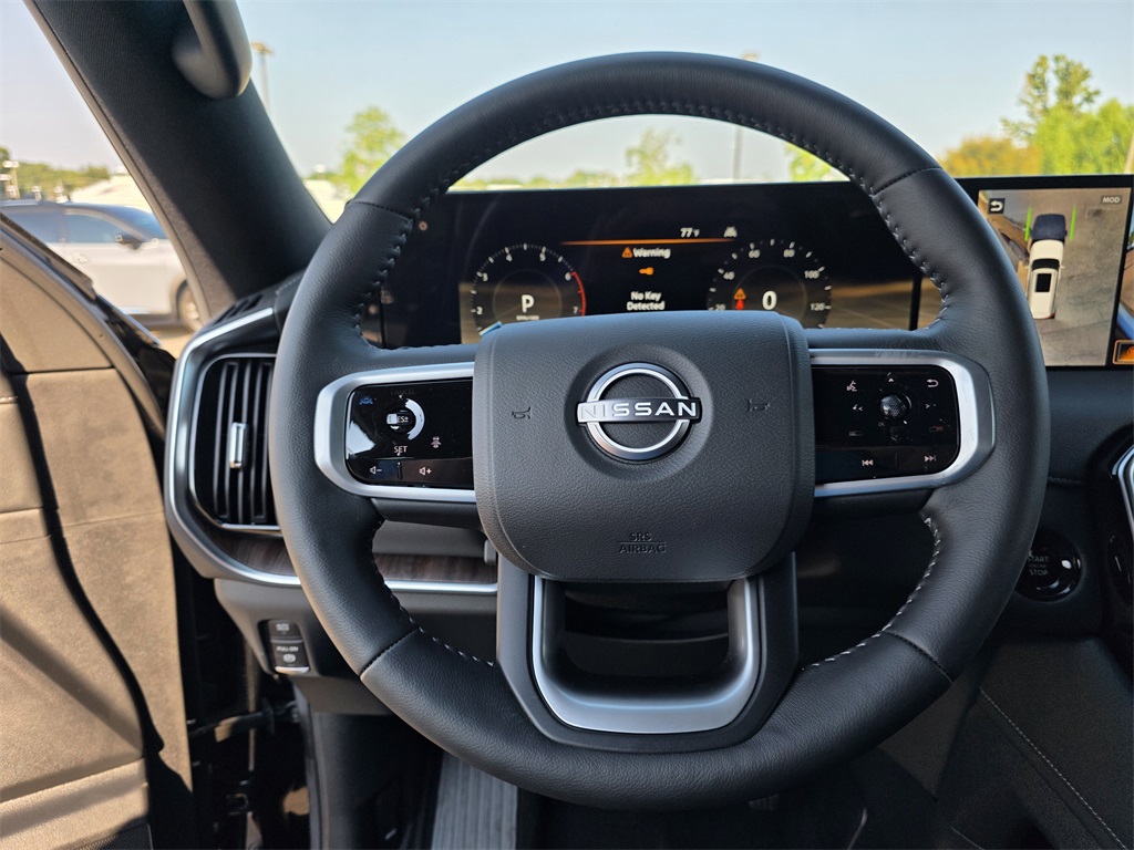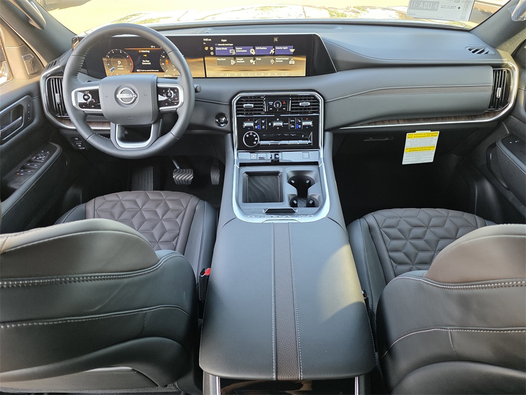 Platinum Package, 12 Speakers, 20" Painted Alloy Wheels, 2nd-Row Split Bench Seat w/40/20/40-Split Folding, 3rd row seats: split-bench, 4-Wheel Disc Brakes, ABS brakes, Air Conditioning, Alloy wheels, AM/FM radio: SiriusXM, Anti-whiplash front head restraints, Auto High-beam Headlights, Auto tilt-away steering wheel, Auto-dimming door mirrors, Auto-dimming Rear-View mirror, Auto-leveling suspension, Automatic temperature control, Brake assist, Bumpers: body-color, Carpeted Floor Mats - Bench Seat, Center Armrest w/2 Cupholders, Climate Controlled Heated & Ventilated Front Seats, Convenience Package, Delay-off headlights, Driver door bin, Driver vanity mirror, Dual front impact airbags, Dual front side impact airbags, Electronic Stability Control, Emergency communication system: NissanConnect Services, EZ Flex 2nd-Row Seating System w/1-Touch Release, Four wheel independent suspension, Front anti-roll bar, Front Bucket Seats, Front Center Armrest, Front dual zone A/C, Front fog lights, Front reading lights, Fully automatic headlights, Garage door transmitter: myQ Connected Garage, Genuine wood dashboard insert, Heated door mirrors, Heated front seats, Heated rear seats, Heated steering wheel, HVAC memory, Illuminated entry, Illuminated Kick Plates, Knee airbag, Leather steering wheel, Low tire pressure warning, Memory seat, Navigation System, Occupant sensing airbag, Outside temperature display, Overhead airbag, Overhead console, Panic alarm, Passenger door bin, Passenger vanity mirror, Power door mirrors, Power driver seat, Power Liftgate, Power moonroof, Power passenger seat, Power steering, Power windows, Quilted Leather Seat Trim, Radio: NissanConnect w/SiriusXM 360L, Rain sensing wipers, Rear air conditioning, Rear anti-roll bar, Rear Bumper Protector, Rear reading lights, Rear window defroster, Rear window wiper, Reclining 3rd row seat, Remote keyless entry, Roof Rail Cross Bars, Security system, Speed control, Speed-sensing steering, Speed-Sensitive Wipers, Splash Guards, Split Bench Seat Package, Split folding rear seat, Spoiler, Steering wheel memory, Steering wheel mounted audio controls, Tachometer, Telescoping steering wheel, Tilt steering wheel, Traction control, Trip computer, Turn signal indicator mirrors, USB Charging Cables, Variably intermittent wipers, Ventilated front seats, Voltmeter.