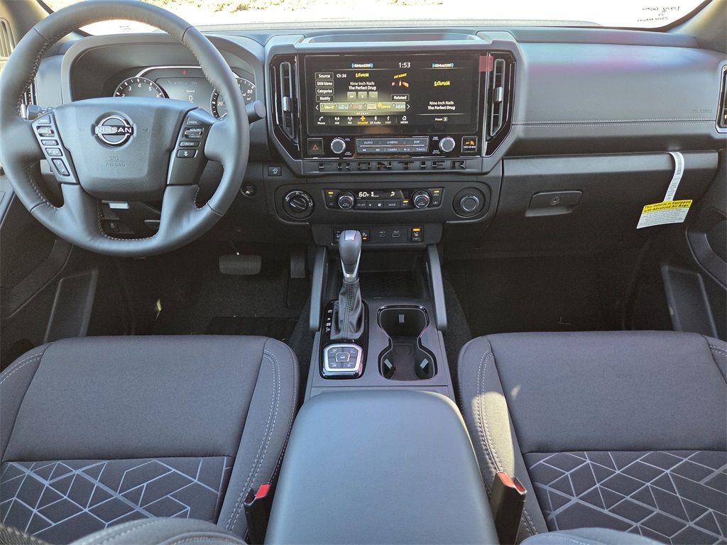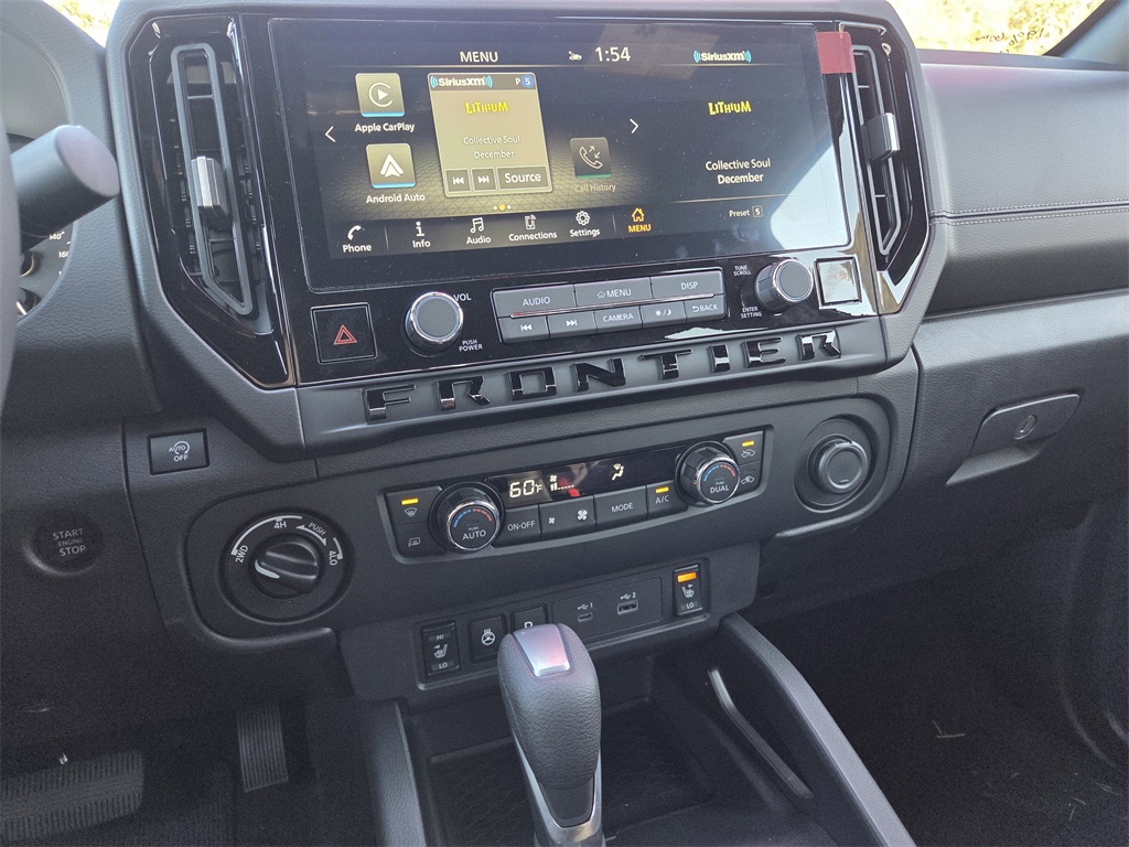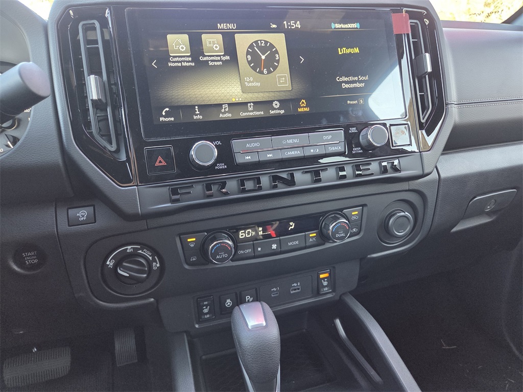 SV Package, 4WD, 120V Power Outlet in Bed, 120V Power Outlet in Rear Center Console, 17" Alloy Wheels, 3.692 Axle Ratio, 4-Wheel Disc Brakes, 6 Speakers, ABS brakes, Air Conditioning, Alloy wheels, AM/FM radio: SiriusXM, Anti-whiplash front head restraints, Auto High-beam Headlights, Bed Under-Rail Lighting, Blind Spot Warning, Brake assist, Bumpers: body-color, Dark Armor Package, Dark FRONTIER Tailgate Lettering, Dark Grill Surround/Mesh/Inner Fascia, Dark Mirror Caps, Delay-off headlights, Driver door bin, Driver vanity mirror, Dual front impact airbags, Dual front side impact airbags, Electronic Stability Control, Electronic Tailgate Lock, Emergency communication system, Front anti-roll bar, Front Bucket Seats, Front Center Armrest, Front reading lights, Front wheel independent suspension, Fully automatic headlights, Heated Front Seats, Heated Leather Steering Wheel, Heated Outside Mirrors, HVAC - Dual-Zone Front Auto A/C, I-Key w/Request Switches on O/S Handles, Illuminated entry, Knee airbag, Locking Glove Box, Low tire pressure warning, Occupant sensing airbag, Overhead airbag, Overhead console, Panic alarm, Passenger door bin, Passenger vanity mirror, Power door mirrors, Power driver seat, Power steering, Power windows, Premium Cloth Seat Trim, Radio data system, Radio: SXM/AM/FM/AUX/USB Audio System, Rear anti-roll bar, Rear seat center armrest, Rear side impact airbag, Rear step bumper, Remote Engine Starter, Remote keyless entry, Security system, Speed control, Speed-sensing steering, Splash Guards, Split folding rear seat, Spray-In Bedliner, Steering wheel mounted audio controls, SV Convenience Package, Tachometer, Telescoping steering wheel, Tilt steering wheel, Tow/Haul Mode Switch, Traction control, Trailer Hitch w/Wiring Harness, Trip computer, Utili-Track System, Variably intermittent wipers, Voltmeter, Wheels: 17" Dark, Wireless Apple CarPlay/Wireless Android Auto.