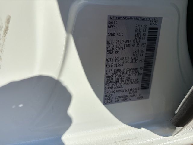 Glacier White 2026 Nissan Frontier SV 4D Crew Cab 4WD 9-Speed Automatic with Overdrive 3.8L DI DOHC 24V V6 Apple CarPlay, Android Auto, **ALLOY WHEELS, **BACKUP CAMERA, **HEATED SEATS, **TOWING PACKAGE, **POWER DRIVER SEAT, **BLUETOOTH CONNECT w/STREAMING AUDIO, 4WD, All-Weather Content Package, Dark Armor Package, Dark FRONTIER Tailgate Lettering, Dark Grill Surround/Mesh/Inner Fascia, Dark Mirror Caps, Heated Front Seats, Heated Leather Steering Wheel, HVAC - Dual-Zone Front Auto A/C, Remote Engine Starter, Tow Package, Wheels: 17" Dark.