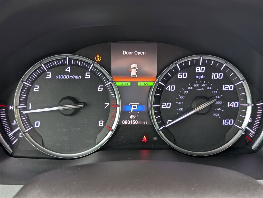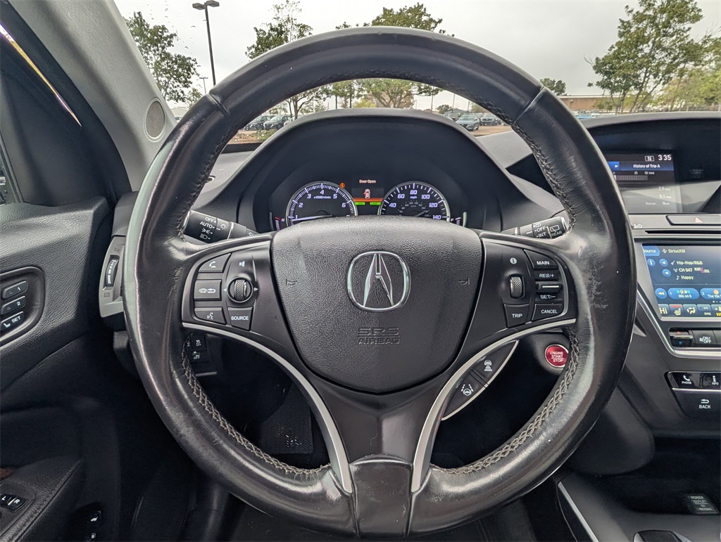 Ebony Leather, 3rd row seats: bench, 4-Wheel Disc Brakes, 4.33 Axle Ratio, 8 Speakers, ABS brakes, Adaptive suspension, Air Conditioning, Alloy wheels, AM/FM radio: SiriusXM, Anti-whiplash front head restraints, Apple CarPlay/Android Auto, Audio memory, Auto High-beam Headlights, Auto tilt-away steering wheel, Auto-dimming Rear-View mirror, Automatic temperature control, Brake assist, Bumpers: body-color, CD player, Compass, Delay-off headlights, Driver door bin, Driver vanity mirror, Dual front impact airbags, Dual front side impact airbags, Electronic Stability Control, Exterior Parking Camera Rear, Four wheel independent suspension, Front anti-roll bar, Front Bucket Seats, Front Center Armrest, Front dual zone A/C, Front reading lights, Garage door transmitter: HomeLink, Heated door mirrors, Heated front seats, Heated Front Sport Seats, HVAC memory, Illuminated entry, Knee airbag, Lane departure: Lane Keeping Assist System (LKAS) active, Leather steering wheel, Low tire pressure warning, Memory seat, Occupant sensing airbag, Outside temperature display, Overhead airbag, Overhead console, Panic alarm, Passenger door bin, Passenger vanity mirror, Power door mirrors, Power driver seat, Power Liftgate, Power moonroof, Power passenger seat, Power steering, Power windows, Premium Leather-Trimmed Interior, Radio data system, Radio: AM/FM Acura Premium Audio System, Rear air conditioning, Rear anti-roll bar, Rear reading lights, Rear seat center armrest, Rear window defroster, Rear window wiper, Remote keyless entry, Security system, Speed control, Speed-sensing steering, Speed-Sensitive Wipers, Split folding rear seat, Spoiler, Steering wheel memory, Steering wheel mounted audio controls, Tachometer, Telescoping steering wheel, Tilt steering wheel, Traction control, Trip computer, Turn signal indicator mirrors, Variably intermittent wipers, Wheels: 18" x 8" Pewter Gray Metallic 5-Spoke.