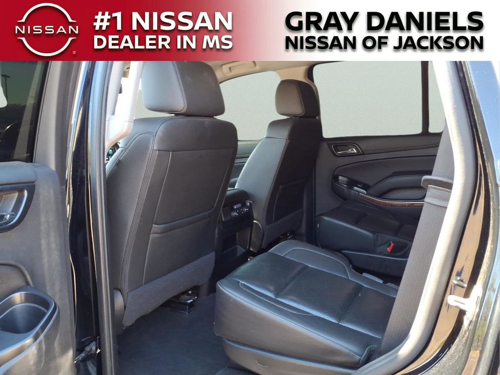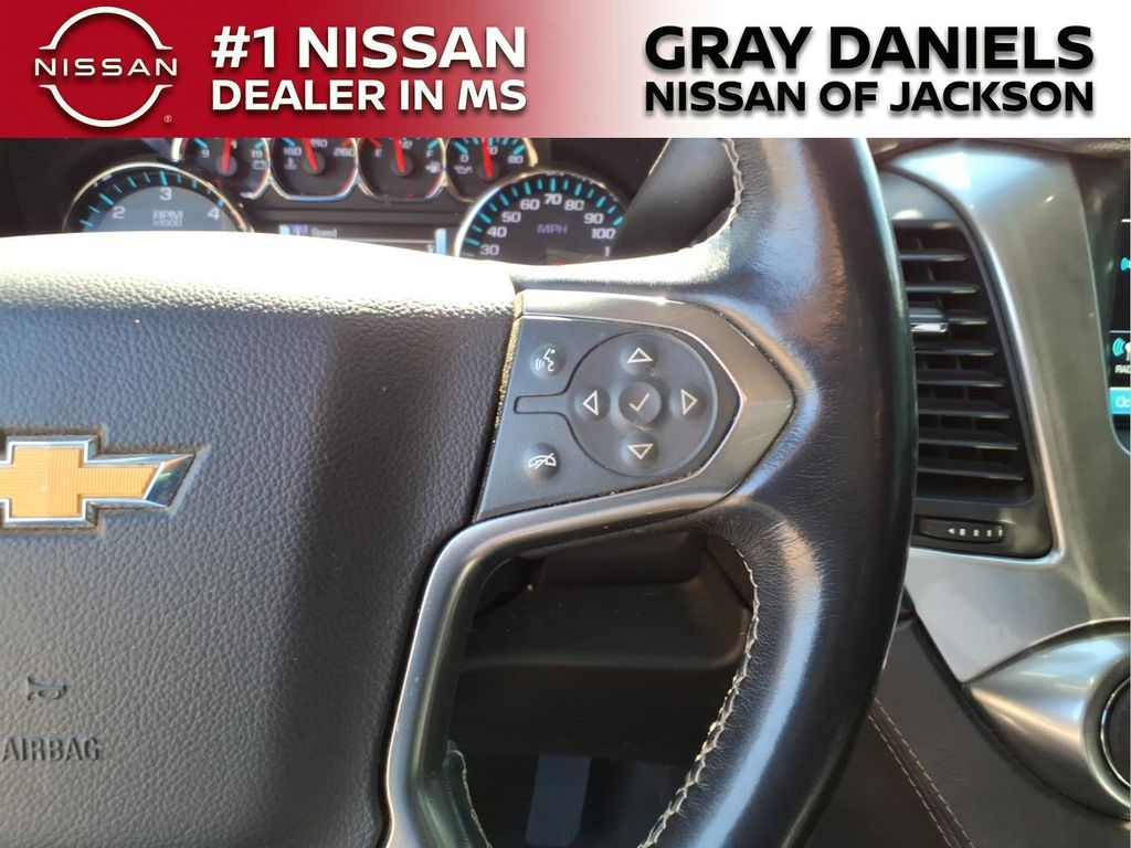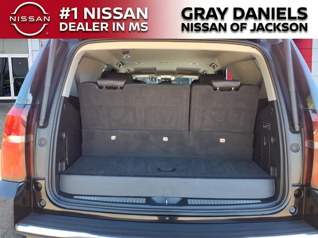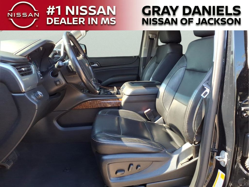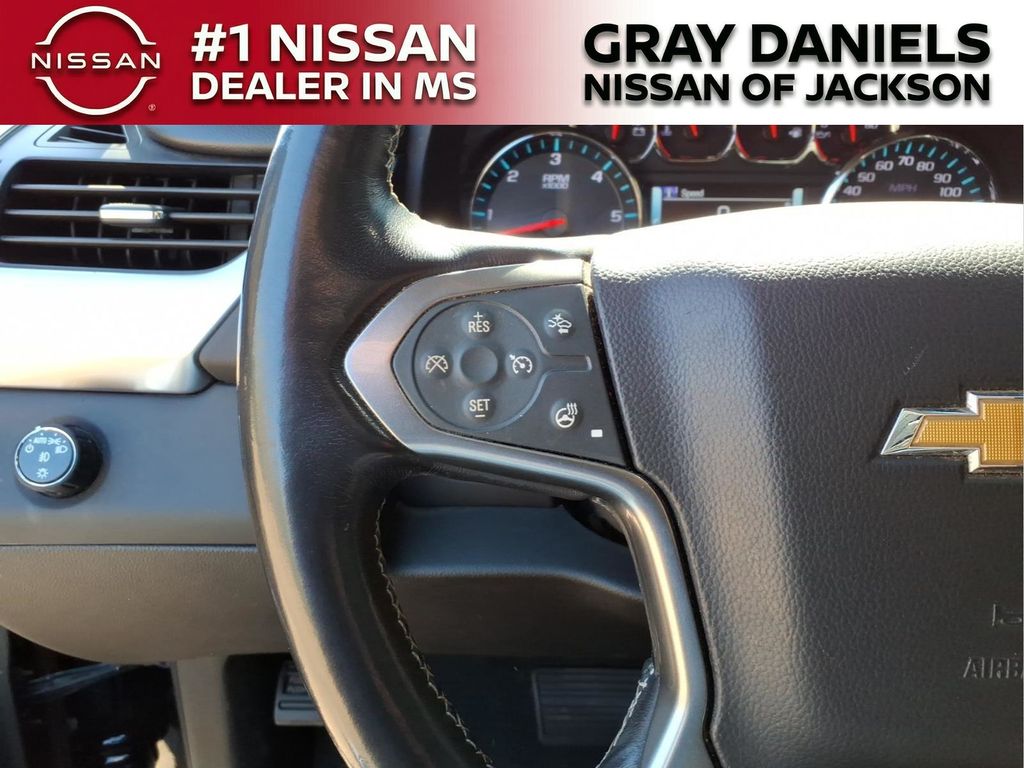 Black Leather, 10 Speakers, 1st & 2nd Row Color-Keyed Carpeted Floor Mats, 3.08 Rear Axle Ratio, 3rd Row 60/40 Power Fold Split-Bench, 3rd row seats: split-bench, 4-Wheel Antilock Disc Brakes w/Brake Assist, 4-Wheel Disc Brakes, 5 12-Volt Auxiliary Power Outlets, ABS brakes, Adaptive suspension, Adjustable pedals, Air Conditioning, Alloy wheels, AM/FM radio: SiriusXM, Apple CarPlay/Android Auto, Auto High-beam Headlights, Auto-dimming door mirrors, Auto-Dimming Inside Rear-View Mirror, Auto-dimming Rear-View mirror, Auto-leveling suspension, Automatic Emergency Braking, Automatic temperature control, Black Assist Steps w/Chrome Accent Strip, Bluetooth for Phone, Bodyside moldings, Bose Centerpoint Premium 10-Speaker Surround Sound, Brake assist, Bumpers: body-color, Cargo Net, CD player, Color-Keyed Carpeting Floor Covering, Compass, Delay-off headlights, Driver door bin, Driver Inboard & Front Passenger Airbags, Driver vanity mirror, Dual front impact airbags, Dual front side impact airbags, Electronic Cruise Control w/Set & Resume Speed, Electronic Stability Control, Emergency communication system: OnStar and Chevrolet connected services capable, Enhanced Driver Alert Package (Y86), Exterior Parking Camera Rear, Floor Console, Fog Lamps, Forward Collision Alert, Front & Rear Park Assist, Front anti-roll bar, Front Bucket Seats, Front Center Armrest, Front dual zone A/C, Front fog lights, Front Heated Reclining Bucket Seats, Front Passenger 6-Way Power Seat Adjuster, Front reading lights, Front wheel independent suspension, Fully automatic headlights, Garage door transmitter, Hands Free Power Liftgate, HD Radio, Heated & Ventilated Driver & Front Passenger Seats, Heated 2nd Row Outboard Seats, Heated door mirrors, Heated front seats, Heated Leather Wrapped Steering Wheel, Heated rear seats, Heated steering wheel, High-Intensity Discharge Headlights, Illuminated entry, IntelliBeam Headlamps, Lane Change Alert w/Side Blind Zone Alert, Lane Keep Assist w/Lane Departure Warning, Leather steering wheel, Low tire pressure warning, Magnetic Ride Control Suspension Package, Memory seat, Memory Settings, Navigation System, Occupant sensing airbag, Outside temperature display, Overhead airbag, Overhead console, Panic alarm, Passenger door bin, Passenger vanity mirror, Passive Entry System, Pedal memory, Perforated Leather-Appointed Seat Trim, Power door mirrors, Power driver seat, Power Liftgate, Power passenger seat, Power Release 2nd Row Bucket Seats, Power steering, Power Tilt & Telescopic Steering Column, Power windows, Power-Adjustable Accelerator & Brake Pedals, Power-Folding Heated Outside Mirrors, Preferred Equipment Group 1LZ, Premium audio system: Chevrolet MyLink, Push Button Keyless Start, Radio: Chevrolet Infotainment AM/FM Stereo w/Nav, Rain sensing wipers, Rear air conditioning, Rear anti-roll bar, Rear Cross Traffic Alert, Rear reading lights, Rear window defroster, Rear window wiper, Remote Keyless Entry, Remote keyless entry, Remote Vehicle Start, Roof-Mounted Luggage Rack Side Rails, Security system, Single-Slot CD/MP3 Player, SiriusXM NavTraffic, SiriusXM Radio, Speed control, Speed-sensing steering, Split folding rear seat, Spoiler, Steering wheel memory, Steering wheel mounted audio controls, Tachometer, Telescoping steering wheel, Tilt steering wheel, Traction control, Trip computer, Turn signal indicator mirrors, Universal Home Remote, Variably intermittent wipers, Ventilated front seats, Voltmeter, Wheels: 20" x 9" Polished-Aluminum, Wireless Charging.