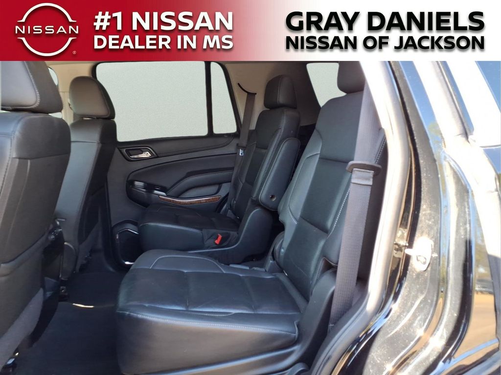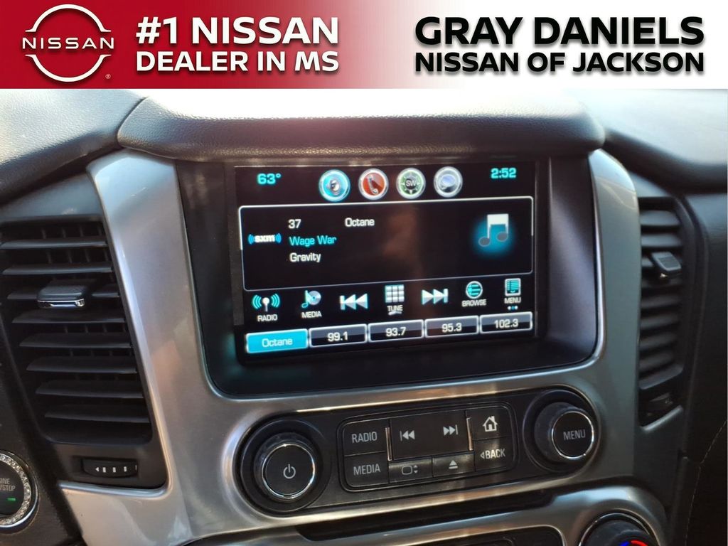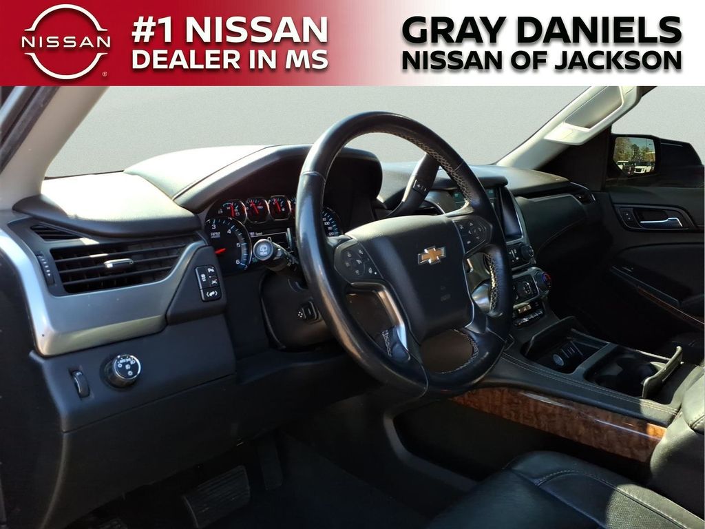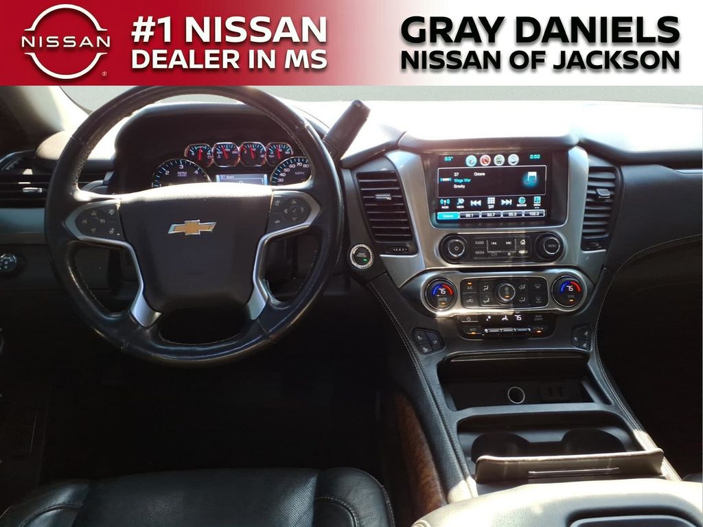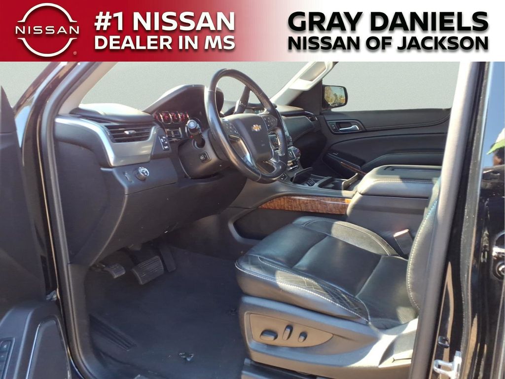 Black Leather, 10 Speakers, 1st & 2nd Row Color-Keyed Carpeted Floor Mats, 3.08 Rear Axle Ratio, 3rd Row 60/40 Power Fold Split-Bench, 3rd row seats: split-bench, 4-Wheel Antilock Disc Brakes w/Brake Assist, 4-Wheel Disc Brakes, 5 12-Volt Auxiliary Power Outlets, ABS brakes, Adaptive suspension, Adjustable pedals, Air Conditioning, Alloy wheels, AM/FM radio: SiriusXM, Apple CarPlay/Android Auto, Auto High-beam Headlights, Auto-dimming door mirrors, Auto-Dimming Inside Rear-View Mirror, Auto-dimming Rear-View mirror, Auto-leveling suspension, Automatic Emergency Braking, Automatic temperature control, Black Assist Steps w/Chrome Accent Strip, Bluetooth for Phone, Bodyside moldings, Bose Centerpoint Premium 10-Speaker Surround Sound, Brake assist, Bumpers: body-color, Cargo Net, CD player, Color-Keyed Carpeting Floor Covering, Compass, Delay-off headlights, Driver door bin, Driver Inboard & Front Passenger Airbags, Driver vanity mirror, Dual front impact airbags, Dual front side impact airbags, Electronic Cruise Control w/Set & Resume Speed, Electronic Stability Control, Emergency communication system: OnStar and Chevrolet connected services capable, Enhanced Driver Alert Package (Y86), Exterior Parking Camera Rear, Floor Console, Fog Lamps, Forward Collision Alert, Front & Rear Park Assist, Front anti-roll bar, Front Bucket Seats, Front Center Armrest, Front dual zone A/C, Front fog lights, Front Heated Reclining Bucket Seats, Front Passenger 6-Way Power Seat Adjuster, Front reading lights, Front wheel independent suspension, Fully automatic headlights, Garage door transmitter, Hands Free Power Liftgate, HD Radio, Heated & Ventilated Driver & Front Passenger Seats, Heated 2nd Row Outboard Seats, Heated door mirrors, Heated front seats, Heated Leather Wrapped Steering Wheel, Heated rear seats, Heated steering wheel, High-Intensity Discharge Headlights, Illuminated entry, IntelliBeam Headlamps, Lane Change Alert w/Side Blind Zone Alert, Lane Keep Assist w/Lane Departure Warning, Leather steering wheel, Low tire pressure warning, Magnetic Ride Control Suspension Package, Memory seat, Memory Settings, Navigation System, Occupant sensing airbag, Outside temperature display, Overhead airbag, Overhead console, Panic alarm, Passenger door bin, Passenger vanity mirror, Passive Entry System, Pedal memory, Perforated Leather-Appointed Seat Trim, Power door mirrors, Power driver seat, Power Liftgate, Power passenger seat, Power Release 2nd Row Bucket Seats, Power steering, Power Tilt & Telescopic Steering Column, Power windows, Power-Adjustable Accelerator & Brake Pedals, Power-Folding Heated Outside Mirrors, Preferred Equipment Group 1LZ, Premium audio system: Chevrolet MyLink, Push Button Keyless Start, Radio: Chevrolet Infotainment AM/FM Stereo w/Nav, Rain sensing wipers, Rear air conditioning, Rear anti-roll bar, Rear Cross Traffic Alert, Rear reading lights, Rear window defroster, Rear window wiper, Remote Keyless Entry, Remote keyless entry, Remote Vehicle Start, Roof-Mounted Luggage Rack Side Rails, Security system, Single-Slot CD/MP3 Player, SiriusXM NavTraffic, SiriusXM Radio, Speed control, Speed-sensing steering, Split folding rear seat, Spoiler, Steering wheel memory, Steering wheel mounted audio controls, Tachometer, Telescoping steering wheel, Tilt steering wheel, Traction control, Trip computer, Turn signal indicator mirrors, Universal Home Remote, Variably intermittent wipers, Ventilated front seats, Voltmeter, Wheels: 20" x 9" Polished-Aluminum, Wireless Charging.
