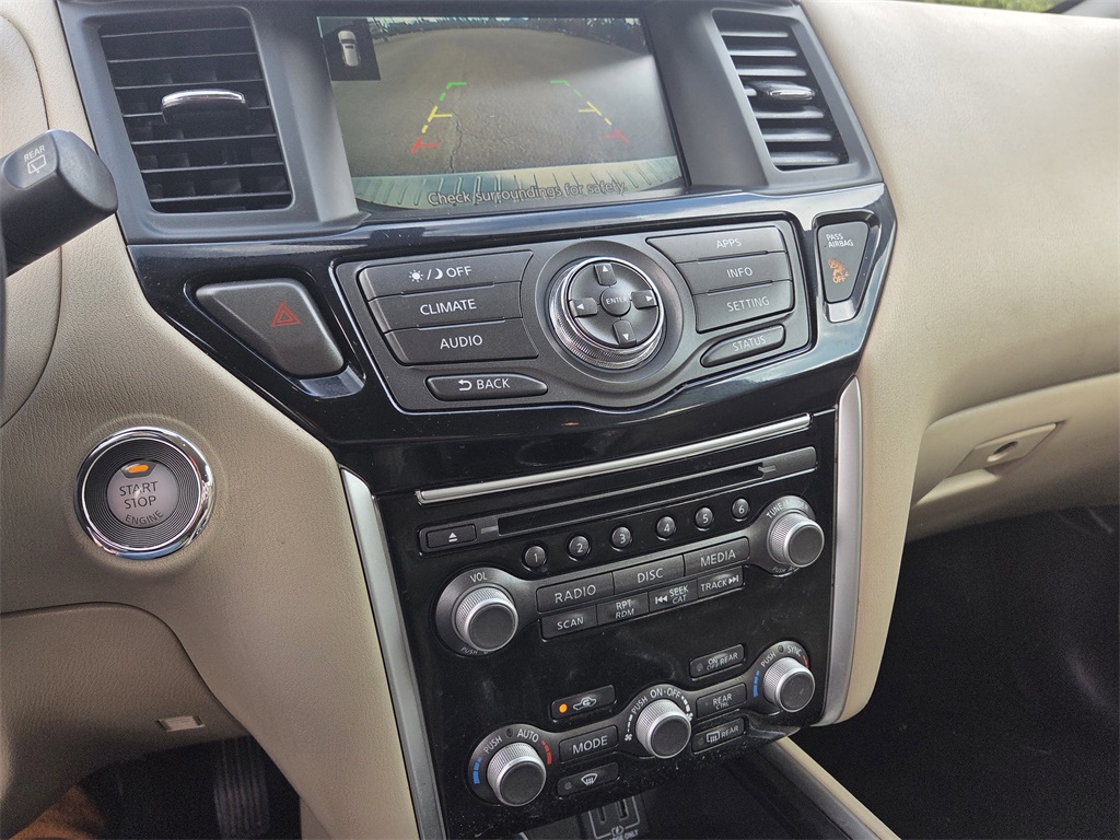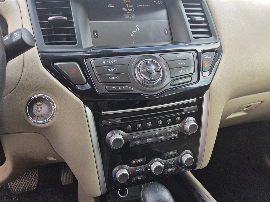 One Owner Trade, SV Package, 3rd row seats: bench, 4-Wheel Disc Brakes, 5.25 Axle Ratio, 6 Speakers, ABS brakes, Air Conditioning, Alloy wheels, AM/FM radio: SiriusXM, Auto-dimming Rear-View mirror, Automatic temperature control, Black Mold-in-Color Splash Guards, Blind Spot Warning, Brake assist, Bumpers: body-color, Cargo Package, Carpeted Floor Mats (4-pc Set), CD player, Cloth Seating Surfaces, Compass, Cross Bars, Delay-off headlights, Driver door bin, Driver vanity mirror, Dual front impact airbags, Dual front side impact airbags, Electronic Stability Control, First Aid Kit, Four wheel independent suspension, Front anti-roll bar, Front Bucket Seats, Front Center Armrest, Front dual zone A/C, Front fog lights, Front reading lights, Fully automatic headlights, Garage door transmitter: HomeLink, Illuminated entry, Leather Shift Knob, Leather steering wheel, Low tire pressure warning, Occupant sensing airbag, Outside temperature display, Overhead airbag, Overhead console, Panic alarm, Passenger door bin, Passenger vanity mirror, Power door mirrors, Power driver seat, Power steering, Power windows, Radio data system, Radio: AM/FM/CD Audio System w/NissanConnect, Rear air conditioning, Rear anti-roll bar, Rear Bumper Protector, Rear Parking Sensors, Rear reading lights, Rear seat center armrest, Rear window defroster, Rear window wiper, Reclining 3rd row seat, Remote keyless entry, Security system, Speed control, Speed-sensing steering, Speed-Sensitive Wipers, Split folding rear seat, Spoiler, Steering wheel mounted audio controls, Tachometer, Telescoping steering wheel, Tilt steering wheel, Tonneau Cover, Traction control, Trip computer, Turn signal indicator mirrors, Variably intermittent wipers, Wheels: 18" x 7.5 J Machined Aluminum-Alloy.