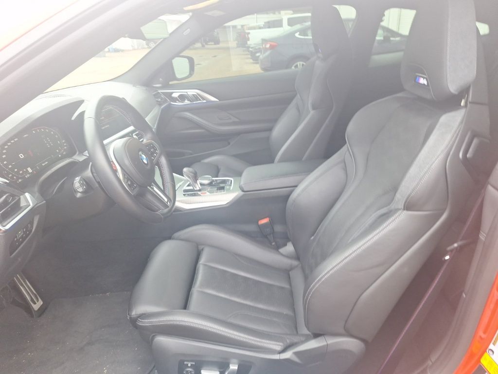 The M4 Competition's interior is equally impressive, with a host of premium features that cater to your every need. Enjoy the comfort of the Extended Merino Leather Upholstery, the convenience of the Navigation System, and the exceptional sound quality of the harman/kardon® Speakers. Stay connected with Apple CarPlay® and Android Auto® compatibility, and experience the added luxury of the Heated Front Seats and Power Front Seats.