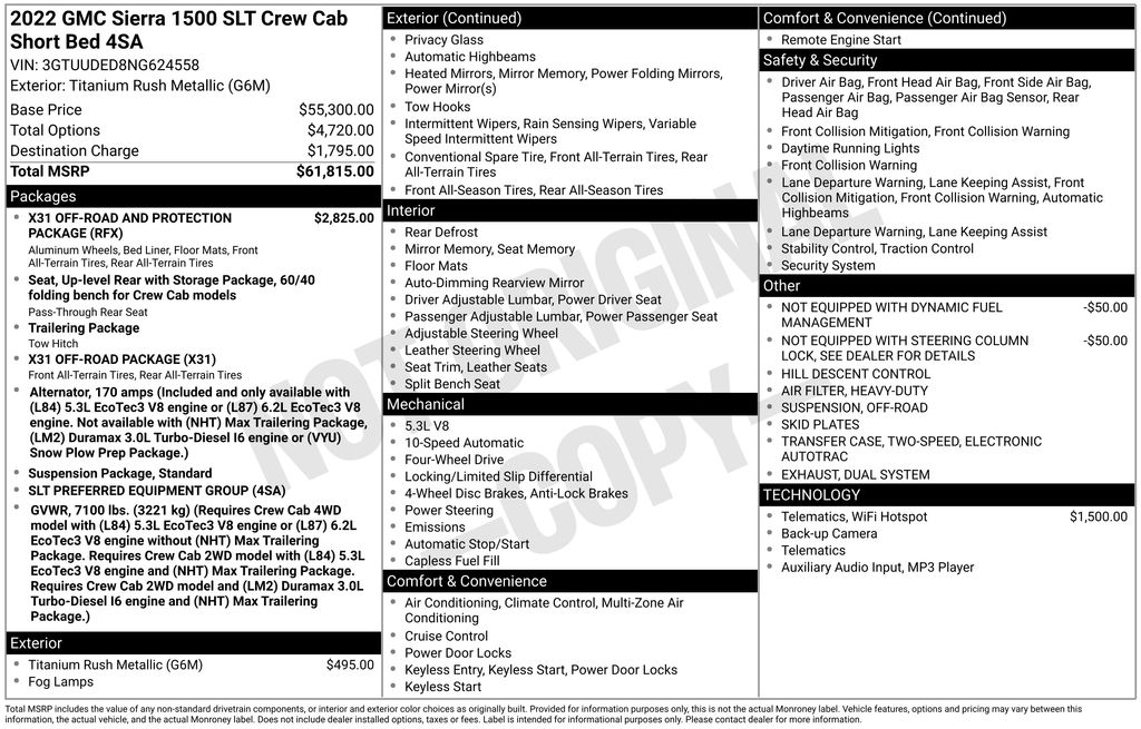 Beneath the hood, the Sierra 1500 SLT is powered by a robust EcoTec3 5.3L V8 engine paired with a smooth-shifting 10-speed automatic transmission and capable 4-wheel drive system. This combination delivers impressive performance and efficiency, with an EPA-estimated 14 city/19 highway MPG.