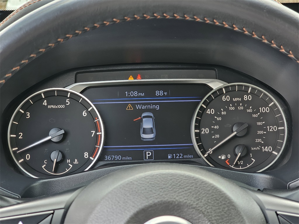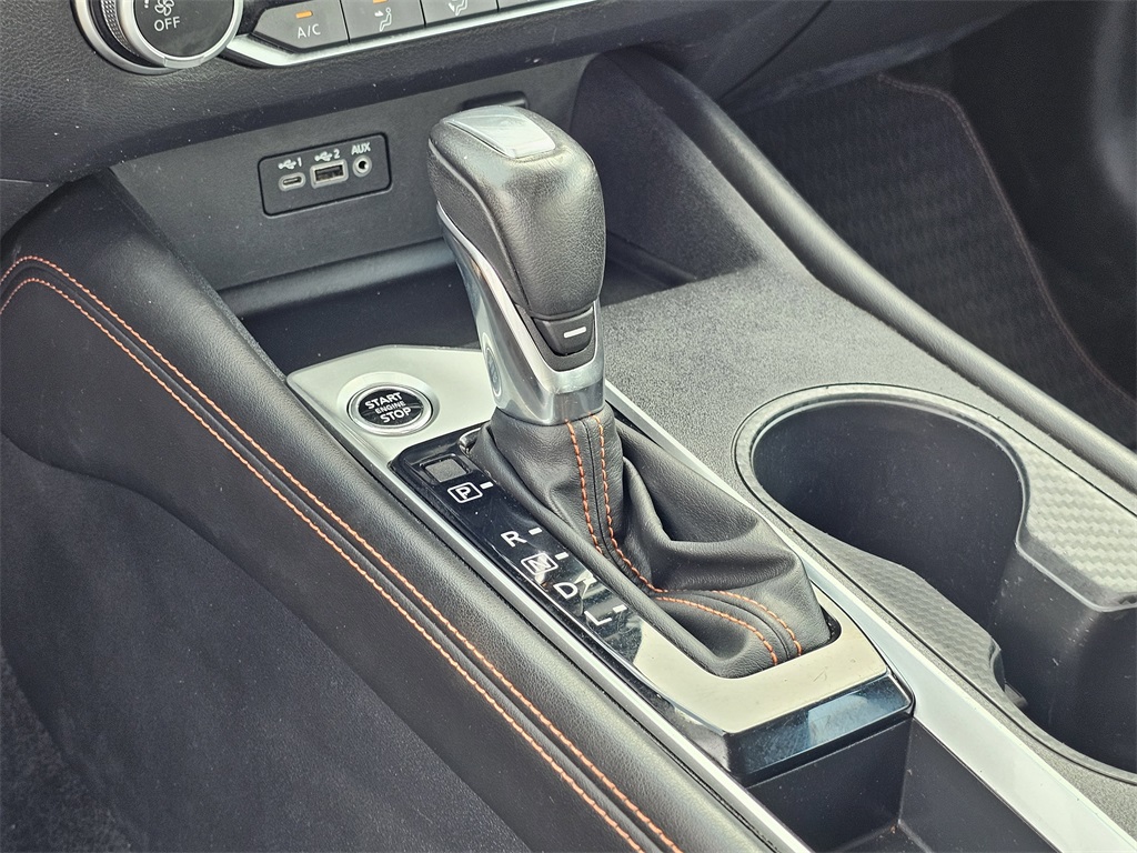One Owner Trade, SR Package, CVT with Xtronic, 4-Wheel Disc Brakes, 6 Speakers, ABS brakes, Air Conditioning, Alloy wheels, AM/FM radio: SiriusXM, Auto High-beam Headlights, Blind Spot Warning, Body-Colored Splash Guards, Brake assist, Bumpers: body-color, Chrome Bumper Protector, Delay-off headlights, Driver door bin, Driver vanity mirror, Dual front impact airbags, Dual front side impact airbags, Electronic Stability Control, Four wheel independent suspension, Front anti-roll bar, Front Bucket Seats, Front Center Armrest, Front reading lights, Front Sport Bucket Seats, Fully automatic headlights, Illuminated entry, Knee airbag, Leather Shift Knob, Low tire pressure warning, NissanConnect featuring Apple CarPlay and Android Auto, Occupant sensing airbag, Outside temperature display, Overhead airbag, Overhead console, Panic alarm, Passenger door bin, Passenger vanity mirror, Power door mirrors, Power driver seat, Power steering, Power windows, Radio data system, Radio: AM/FM Audio System, Rear anti-roll bar, Rear Parking Sensors, Rear reading lights, Rear seat center armrest, Rear side impact airbag, Rear window defroster, Remote keyless entry, Security system, Speed control, Speed-sensing steering, Speed-Sensitive Wipers, Split folding rear seat, Sport Seat Trim, Sport steering wheel, SR Floor Mats/Trunk Mat/Hideaway Nets, Steering wheel mounted audio controls, Tachometer, Telescoping steering wheel, Tilt steering wheel, Traction control, Trip computer, Trunk Organizer Tray, Variably intermittent wipers, Wheels: 19" Machined Alloy.