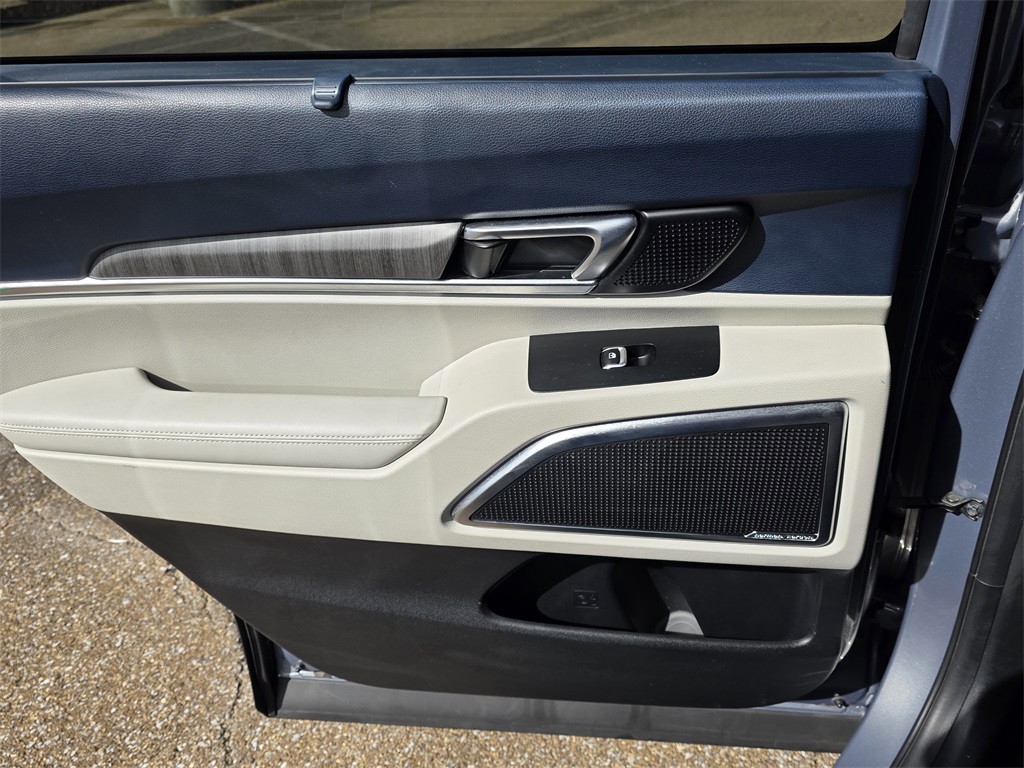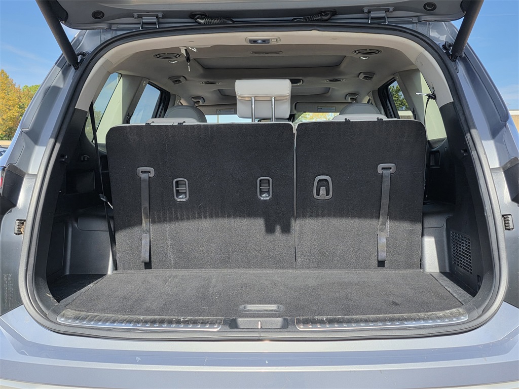 One Owner Trade, 10 Speakers, 3.648 Axle Ratio, 3rd row seats: split-bench, 4-Wheel Disc Brakes, ABS brakes, Air Conditioning, Alloy wheels, AM/FM radio: SiriusXM, Apple CarPlay & Android Auto, Auto High-beam Headlights, Auto-dimming Rear-View mirror, Automatic temperature control, Brake assist, Bumpers: body-color, Carpet Floor Mats, Compass, Delay-off headlights, Driver door bin, Driver vanity mirror, Dual front impact airbags, Dual front side impact airbags, Electronic Stability Control, Emergency communication system: 911 Connect, Exterior Parking Camera Rear, Four wheel independent suspension, Front anti-roll bar, Front Bucket Seats, Front Center Armrest, Front dual zone A/C, Front fog lights, Front reading lights, Fully automatic headlights, Garage door transmitter: HomeLink, harman/kardon® Speakers, Heated & Ventilated Front Bucket Seats, Heated door mirrors, Heated front seats, Heated steering wheel, Illuminated entry, Knee airbag, Leather Seat Trim, Leather Shift Knob, Leather steering wheel, Low tire pressure warning, Memory seat, Navigation System, Occupant sensing airbag, Outside temperature display, Overhead airbag, Overhead console, Panic alarm, Passenger door bin, Passenger vanity mirror, Power door mirrors, Power driver seat, Power Liftgate, Power moonroof, Power passenger seat, Power steering, Power windows, Radio data system, Radio: AM/FM harman/kardon Audio System, Rear air conditioning, Rear anti-roll bar, Rear audio controls, Rear reading lights, Rear side impact airbag, Rear window defroster, Rear window wiper, Reclining 3rd row seat, Remote keyless entry, Roof rack: rails only, Security system, Smart Key w/ Push Button and Remote Start, Speed control, Speed-sensing steering, Split folding rear seat, Spoiler, Steering wheel mounted audio controls, Tachometer, Telescoping steering wheel, Tilt steering wheel, Traction control, Trip computer, Turn signal indicator mirrors, Variably intermittent wipers, Ventilated front seats, Wheels: 20" x 7.5" Black Finish.