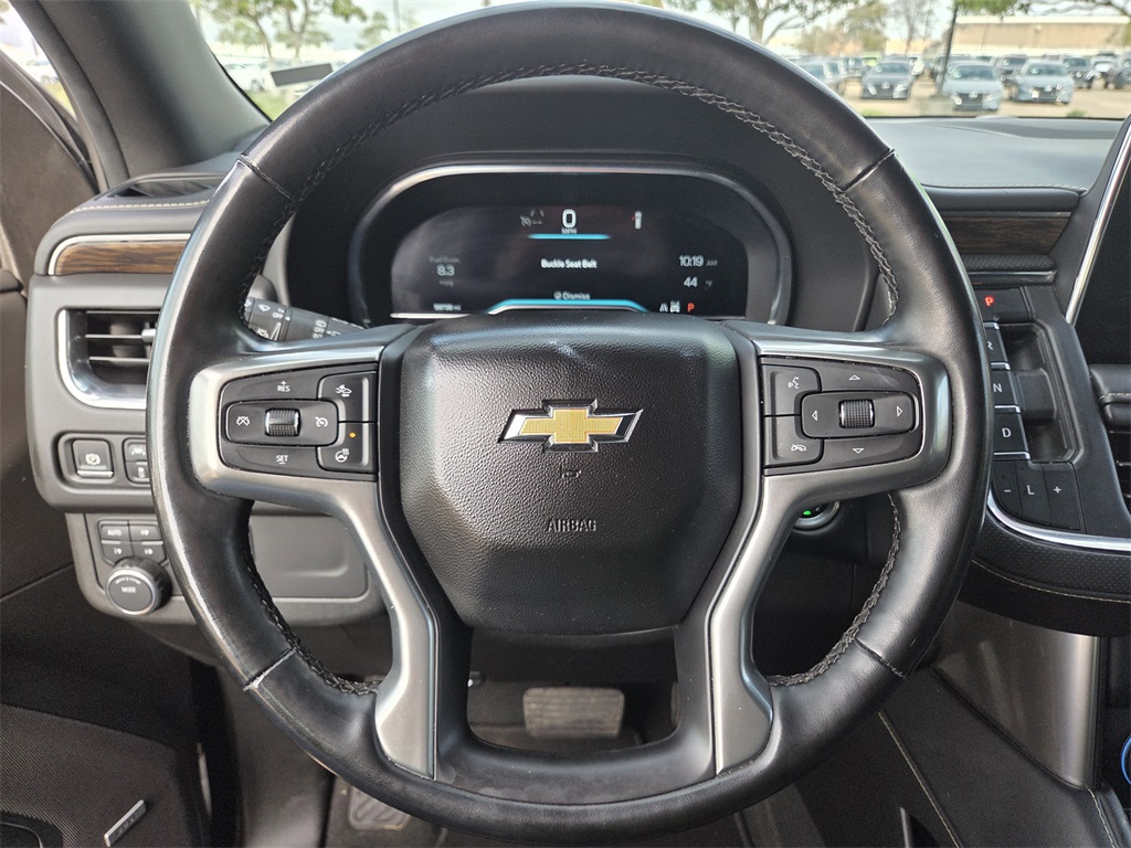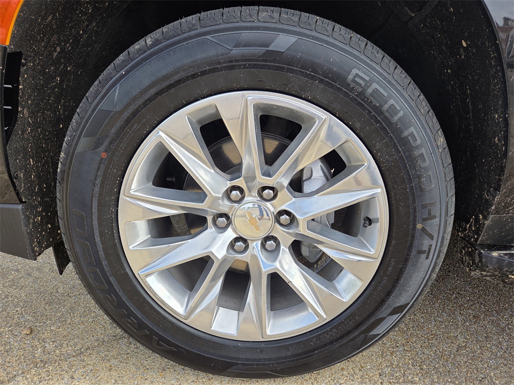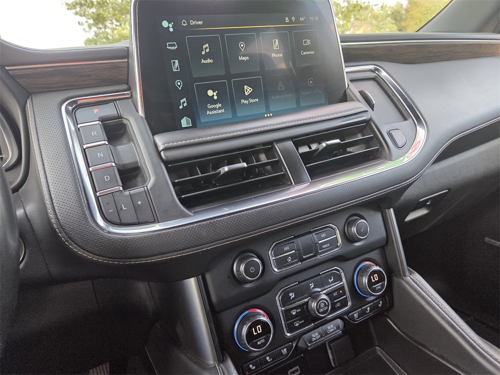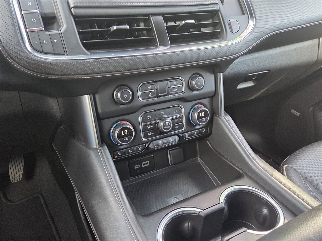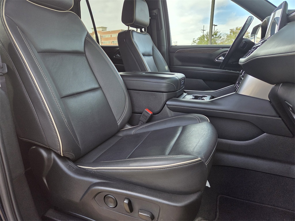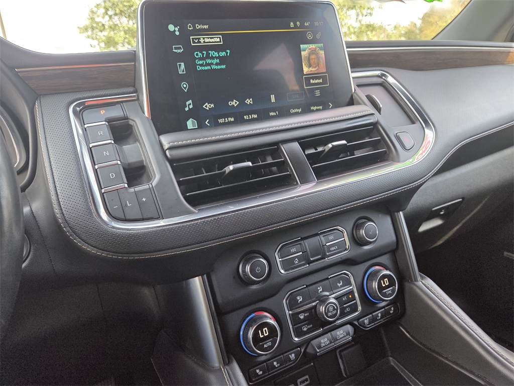 One Owner Trade, 4WD, Black Leather, 10 Speakers, 12-Way Power Driver & Passenger Seat Adjusters, 1st & 2nd Row Color-Keyed Carpeted Floor Mats, 2-Speed Active Electronic AutoTrac Transfer Case, 20" x 9" Polished Aluminum Wheels, 3.23 Rear Axle Ratio, 3rd Row 60/40 Power-Folding Split-Bench Seat, 3rd row seats: split-bench, 4-Wheel Disc Brakes, ABS brakes, Adaptive suspension, Air Conditioning, Alloy wheels, AM/FM radio: SiriusXM with 360L, Apple CarPlay/Android Auto, Auto High-beam Headlights, Auto-dimming door mirrors, Auto-Dimming Inside Rear-View Mirror, Auto-dimming Rear-View mirror, Auto-leveling suspension, Automatic temperature control, Bose 10-Speaker Centerpoint Surround Audio Sys Ft, Brake assist, Bright Front & Rear Door Sill Plates, Bumpers: body-color, Chrome Door Handles w/Body-Color Strip, Chrome Mirror Caps, Color-Keyed Carpeting Floor Covering, Compass, Delay-off headlights, Deleted 3 Years of OnStar Remote Access, Driver & Front Outboard Passenger Airbags, Driver & Front Passenger Heated & Ventilated Seats, Driver door bin, Driver vanity mirror, Dual Exhaust System, Dual front impact airbags, Dual front side impact airbags, Electronic Stability Control, Emergency communication system: OnStar and Chevrolet connected services capable, Enhanced Driver Information Center, Floor Console, Four wheel independent suspension, Front anti-roll bar, Front Bucket Seats, Front Center Armrest, Front dual zone A/C, Front High-Back Reclining Bucket Seats, Front reading lights, Fully automatic headlights, Garage door transmitter, Hands-Free Rear Power Programmable Liftgate, Heated 2nd Row Outboard Seats, Heated door mirrors, Heated Driver & Front Passenger Seats, Heated front seats, Heated rear seats, Heated Steering Wheel, Heated steering wheel, Hill Descent Control, Illuminated entry, Infotainment Display, Lane Change Alert w/Side Blind Zone Alert, LED Daytime Running Lamps, Low tire pressure warning, Magnetic Ride Control Suspension, Memory seat, Memory Settings, Navigation System, Occupant sensing airbag, Outside Heated Power-Adjustable Mirrors, Outside temperature display, Overhead airbag, Overhead console, Panic alarm, Passenger door bin, Passenger vanity mirror, Perforated Leather Seat Trim, Power door mirrors, Power driver seat, Power Liftgate, Power passenger seat, Power Release 2nd Row Bucket Seats, Power steering, Power Tilt & Telescopic Steering Column, Power windows, Preferred Equipment Group 1LZ, Premium audio system: Chevrolet Infotainment 3 Premium, Radio: Chevrolet Infotainment 3 Premium System, Rain sensing wipers, Rear air conditioning, Rear anti-roll bar, Rear Cross Traffic Alert, Rear reading lights, Rear window defroster, Rear window wiper, Remote keyless entry, Remote Start, Roof rack: xxxxxx, Safety Alert Seat, Security system, SiriusXM w/360L, Speed control, Speed-sensing steering, Split folding rear seat, Spoiler, Steering wheel memory, Steering wheel mounted audio controls, Tachometer, Telescoping steering wheel, Tilt steering wheel, Traction control, Trip computer, Turn signal indicator mirrors, Universal Home Remote, Variably intermittent wipers, Ventilated front seats, Voltmeter, Wireless Charging, Wrapped Steering Wheel.